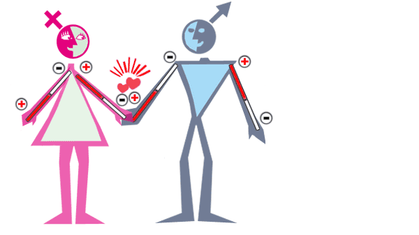 Гармония - противоположные магнитные полюса притягиваются. Подобные - отталкиваются. Если сравнить наши эмоциональные связи с магнитами - можно проиллюстрировать процесс взаимоотношений в... ну например .... Его и Её.